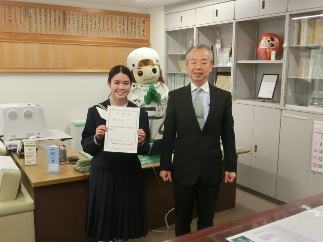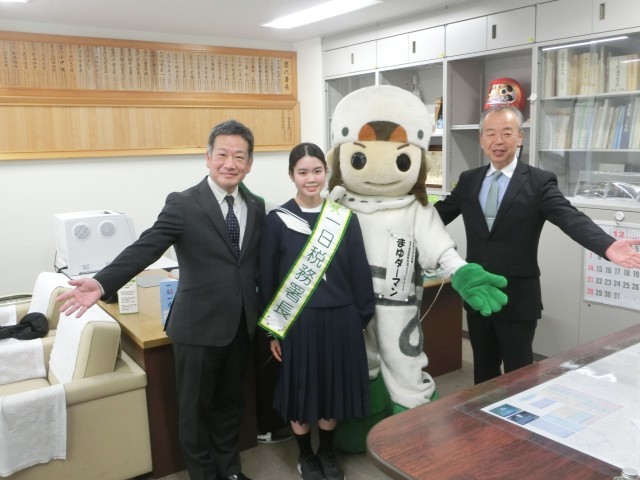中学生税の作文コンクールで受賞した本校生徒が、藤岡税務署の1日署長を務めました。作文では、複合施設「ふじまる」建設に向けたワークショップに参加して提案したことが、オープンした「ふじまる」に生かされたことを知ったときの嬉しさについて述べ、「税金の使い方を市民が考える」貴重な機会に触れたと振り返っています。新聞記者の方の取材にも堂々と答えるなど、頼もしい1日署長としての姿でした。