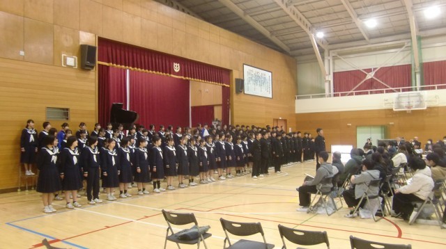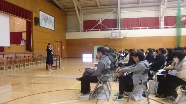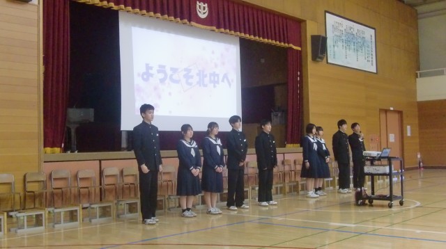 入学説明会では、校長の話に続き、生徒会長による挨拶が行われました。その親しみやすい語り口に、6年生のみなさんも引き込まれるように聞き入っていました。 その後、生徒会本部役員が「北中学校への招待状」と題し、学校生活を寸劇で紹介をしました。さらに1年生による校歌披露も行われ、本校が目指す「生徒主体の学校づくり」を肌で感じていただけたのではないかと思います。 第二小学校、神流小学校のみなさんのご入学を、心より楽しみにしています。ボランティアの皆様にも受付でお世話になりました。ありがとうございました。
