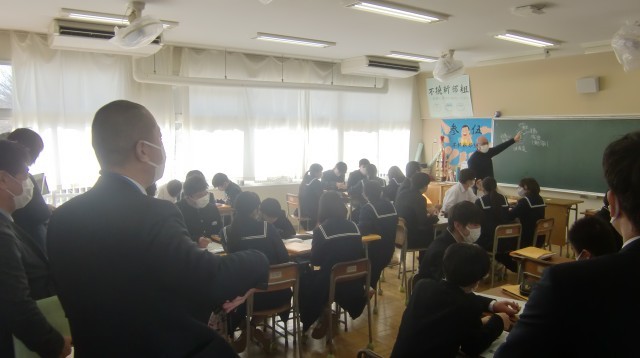 2/9 市教委年度末訪問 公開日 2026/02/09 更新日 2026/02/09 できごと 教育長様をはじめ、市教育委員会のみなさんによる学校訪問がありました。全クラスの授業を参観いただき、子どもがより主体的に取り組める授業づくりや、北一貫校としての学校経営についてご指導をいただきました。学習環境や生徒の学びの姿、先生方の仕事ぶりに対していただいたお褒めの言葉を励みに、今年度をしっかりと締めくくっていきます。 +2
