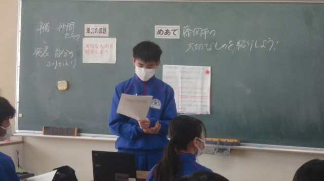 2/12 2年生英語の授業 公開日 2026/02/13 更新日 2026/02/13 できごと 「藤岡市の大切なものを紹介しよう」をめあてとして、全体で発表会を行っていました。既習事項を生かして、自分たちが住む町のことについて発表しました。身近な藤岡市のことを英語を使って堂々と発表していました。海外の人に、いつでも藤岡市のことを説明できそうです。