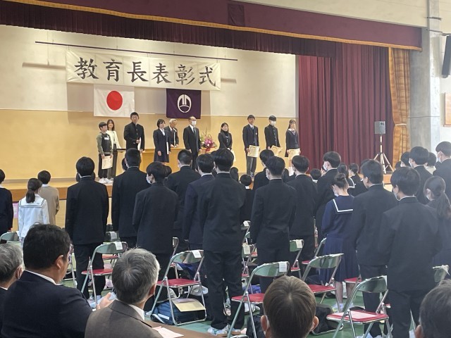 今年度の教育長表彰式が総合学習センター体育館で開催され、多くの北中生が参加しました。部活動や社会体育で、学芸・体育の優れた成績を残した生徒たち。多くの来賓のみなさん、保護者の皆さんから祝福を受けていました。受賞、おめでとうございます。