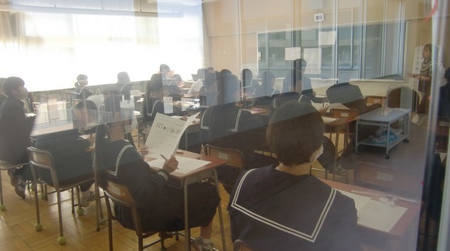 2/19 期末テスト(1・2年生) 公開日 2026/02/20 更新日 2026/02/20 できごと 19日(木)、20日(金)の2日間にわたり、1・2年生は期末テストに臨んでいます。2年生は、1年後の今頃は、自分たちも群馬県の公立高校入試ということで、緊張感をもって取り組んでいました。また、1年生は、定期テストにも慣れ、落ち着いた様子で取り組んでいました。