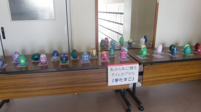 2/20 学校美術館 公開日 2026/02/20 更新日 2026/02/20 できごと 美術の授業で制作した3年生の作品が東玄関に入ってすぐのところに展示されています。”私から私に贈るタイムカプセル「夢たまご」”と題して、たまごの中には、将来の自分にあてた手紙や先生方や友達からのメッセージなどが入っています。この後、素敵な「夢たまご」は大切に家に持ち帰る予定です。