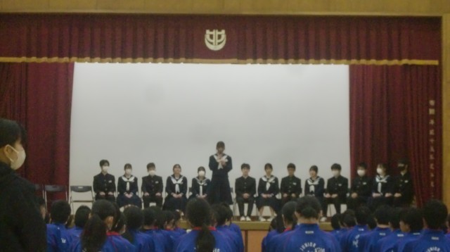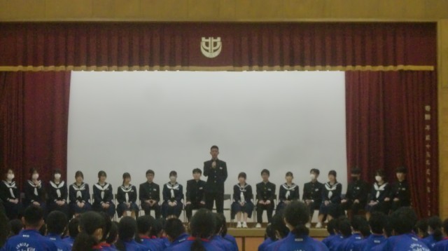 今年度の第2回生徒総会を行いました。まず生徒会長より「1年間をしっかりと振り返り、来年につなげていきましょう」とあいさつがあり、その後、各専門委員会、部活動の活動報告や今後の見通し、予算の会計報告を行いました。議事の後半では、生徒会本部役員の定数の削減案等の提案がありました。最後に、過日行われた「いじめ問題解決に向けた子ども会議」の報告を行いました。最後に校長先生からは「ミラノ・コルティナ冬季オリンピックでのことにも触れながら、2・3年生の会を待つ姿勢、集中して話を聞く姿、準備をしてくれた人、日頃からがんばってくれた人、いい雰囲気の中で、来年度につながる素晴らし生徒総会を行うことができました。」と話がありました。生徒会本部のみなさん、先生方、大変お疲れさまでした。