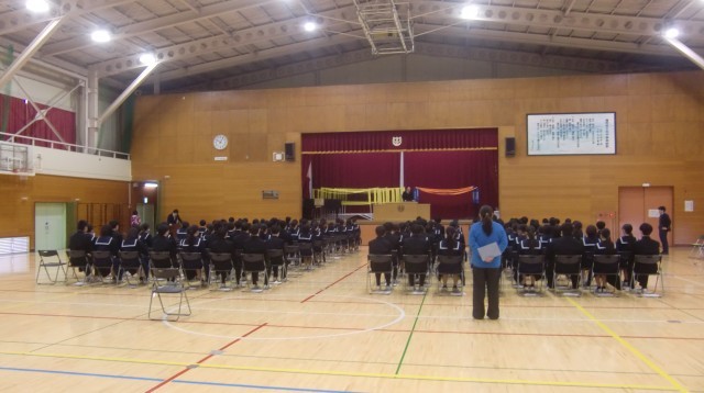 3/5 卒業式練習 公開日 2026/03/05 更新日 2026/03/05 できごと 3年生が登校する日数も、今日を含めて7日となっています。今日からいよいよ3年生の卒業証書授与の練習がスタートしました。証書の受取の所作について学年主任からの話を聴き、実際に練習をしました。その姿から最高の卒業式にしようとする意気込みがひしひしと伝わって来ました。