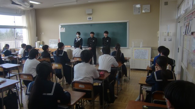 3/6 受験に向けたアドバイス 公開日 2026/03/06 更新日 2026/03/06 お知らせ 朝読書の時間、3年生の代表生徒が1・2年生の各クラスを訪れ、受験に向けたアドバイスを伝えました。「日々の授業を大切にし、1・2年生のうちに基礎・基本を固めること」「計画的な学習習慣を今から身につけておくこと」など、実体験に基づいた説得力のある言葉に、下級生たちはメモを取りながら真剣に耳を傾けていました。