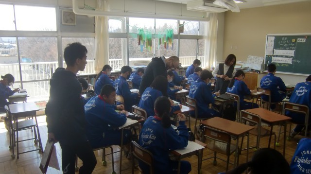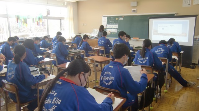 授業の導入で、文法の復習をしていました。「He gave me the book.」「My brother was surfing.」など、今まで習ったことを思い出していました。