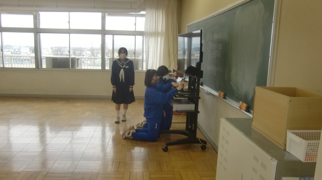 3/18 1年生英語の授業 公開日 2026/03/18 更新日 2026/03/18 できごと 「春休みの予定について、英語で伝えられるようになろう」をめあてとして学習をしていました。「I’m going to」と「will」の使い分けについて生徒から疑問が挙げられ、先生が説明をしているところでした。「I’m going to」は予定を伝えるときに使うことがわかったようです。