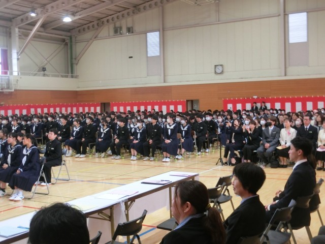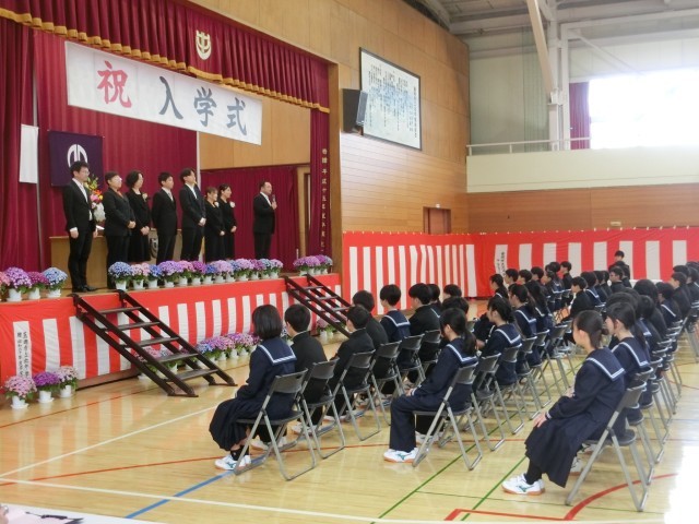 124名の新入生を迎え、入学式を行いました。呼名を受けての元気な返事、話をしっかりと聞く姿勢など、緊張感の中でも力を発揮して立派に中学校生活をスタートさせました。これからの毎日で成長する姿を楽しみにしています。