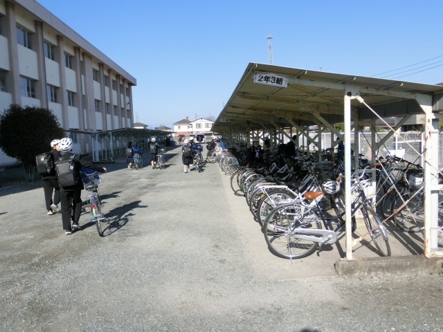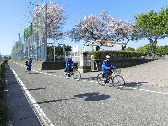 さわやかな青空の下、元気に登校する生徒たちです。初めて自転車通学をする新入生も、ルールとマナーを守って安全に登下校できるよう声をかけていきます。地域のみなさまにも見守っていただけるとありがたいです。