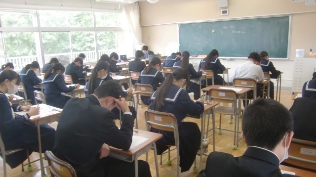 4月23日 3年生全国学力学習状況調査 公開日 2026/04/23 更新日 2026/04/23 できごと 3年生が全国学力学習状況調査に臨みました。先日の英語の3技能調査に引き続き、本日は国語と数学の調査に臨みました。後日、英語の話す技能の調査を行います。