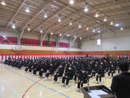 体育館では、新2・3年生が儀式の始まりを静かに待ち、凜とした空気を作り出していました。そのような中、新しく赴任した教職員の紹介とあいさつをよく聞き、拍手で迎えてくれました。その後の始業式では、校長先生が今年度北中が目指すべきこと等について話されました。生徒は終始姿勢良く、真剣な表情で話を聞いており、新年度への期待と希望を抱いている様子がうかがえました。