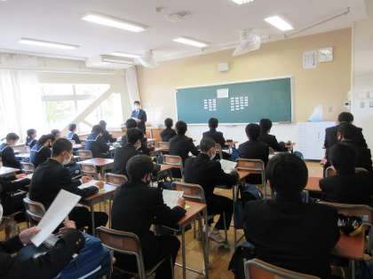 はじめての学活 公開日 2021/04/07 更新日 2021/04/07 できごと 新任式・始業式を終え、生徒は、はじめての学活にのぞみました。新しい担任の先生と新しいクラスということで、はじめは緊張した面持ちでいたようですが、自己紹介がはじまると各教室から明るい笑い声が聞こえ、温かな雰囲気に包まれていました。 今日からはじまる新しいクラスでの生活に期待が膨らむ良いスタートになりました。