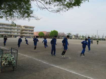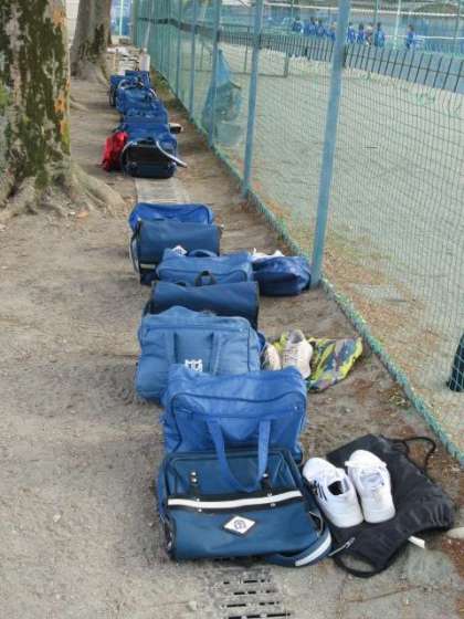 写真はサッカー部の活動の様子です。各自の荷物の整理整頓にも気を配っていました。