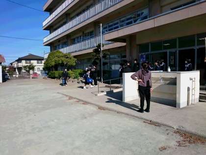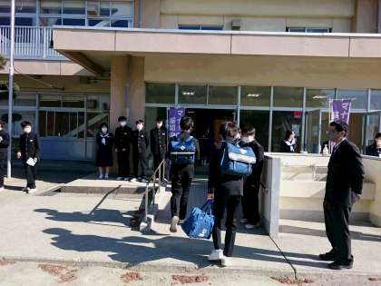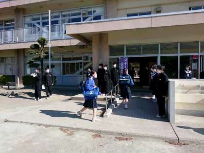 4月15日(木) 朝のあいさつ運動 公開日 2021/04/15 更新日 2021/04/15 できごと 生活委員会、生徒会本部役員によるあいさつ運動が始まりました。 今年も、「マスクの下の笑顔を忘れずに!」 晴天の清々しい朝、気持ちのよいあいさつがたくさん交わされていました。