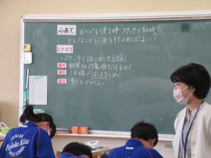 1年生の授業の様子(1) 4月16日(金) 公開日 2021/04/16 更新日 2021/04/16 できごと 理科の授業では、ルーペの正しい使い方やスケッチのコツについて知り、観察の仕方をまとめていました。これまでの観察の仕方も振り返りながら、対象物だけをかく、見取ったままに正確にかくなどのポイントをつかみ、プリントの消しゴムの写真を実際にスケッチしていました。今後の観察にぜひ生かしてほしいと思います。