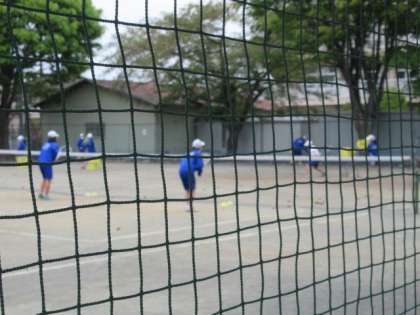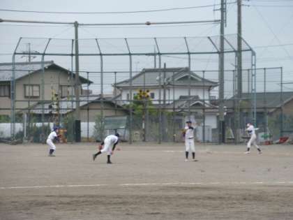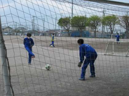 写真上から野球部、サッカー部、女子ソフトテニス部の活動の一場面です。