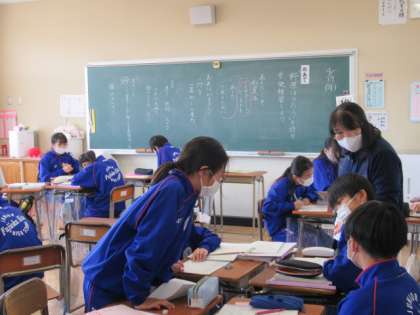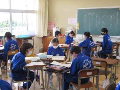 1年生の国語では、詩『野原はうたう』の音読練習に取り組んでいました。小グループ毎に、担当する連や読み方の工夫について話し合っています。話し合いと練習を通して、詩の情景に相応しい速さや声の大きさ、間の取り方などを工夫した、素敵な朗読となるとよいですね。