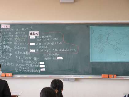 学びのつながりのある授業 4月20日(火) 公開日 2021/04/20 更新日 2021/04/20 できごと 本格的に授業も始まり、生徒も先生も生き生きと授業をしています。各教室では「これまで」「ここでは」「このあとは」のプレートを活用し、生徒に理解しやすい、学びのつながりのある授業が展開されています。
