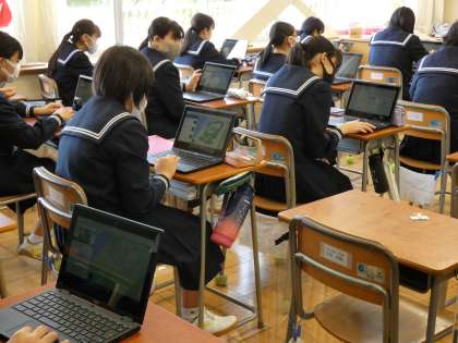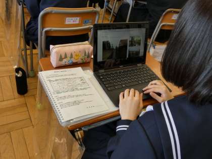 4月22日(木) 3年生修学旅行準備進む 公開日 2021/04/22 更新日 2021/04/22 できごと 3年生では、5月16日から始まる修学旅行に向けて、急ピッチで事前学習を進めています。今年度からは、一人1台のPCを使えるため、効率よく調べ学習が進められています。