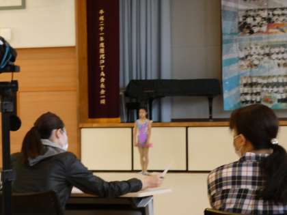 西中学校の体育館では、張り詰めた緊張感の中で新体操の試合が行われていました。
