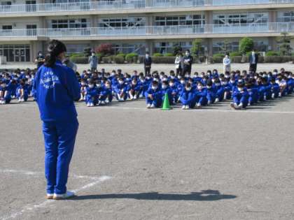 今年度最初の避難訓練を、火災を想定して実施しました。玄関からは全速力で避難場所に向かって駆け、到着すると自主的に整列し、委員長が人員確認をする姿が見られました。全生徒の避難確認までに要した時間は3分15秒。交通安全委員長より、訓練の意義や訓練を生かすことの大切さが話されました。