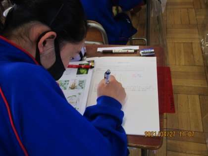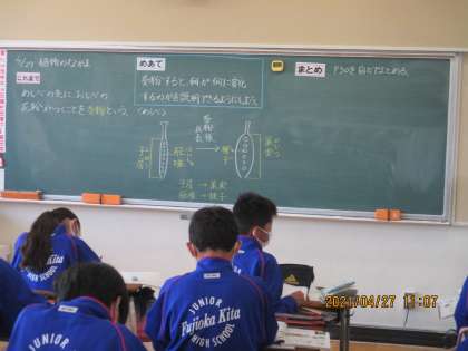 1年生理科の授業。「受粉」は小学校で習いましたね。