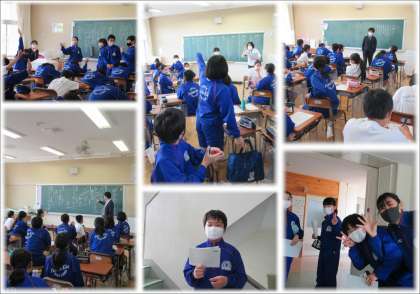 1年生の学級活動の一場面です。ゴールデンウィークを前に、クラス毎に考えた活動に取り組んでいました。学校教育目標に照らし合わせて学級目標を話し合うクラス、伝言ゲームやビンゴなどのレクを楽しむクラス、次の学級レクを考えるクラス…。生徒も担任の先生もとても楽しそうです。体育館でのレクを終えて教室の戻る生徒も、「すごく楽しかったです」と明るい表情で答えてくれました。クラスメイトとの繋がりをより感じることのできた時間となったようです。