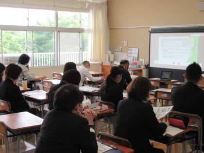 全体会は、GoogleMeetを活用してのオンライン研修でしたが、どの教室でもメモを取りながら真剣に見聞きする先生方の姿がありました。