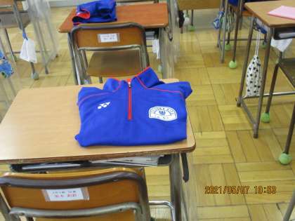 5月7日(金) 2年生体育の時の教室にて 公開日 2021/05/07 更新日 2021/05/07 できごと 先日は3年生の教室の様子をお伝えしたところですが、今日2年生の教室に行ってみると、「さすがです。」2年生も3年生同様。体育着の長袖、長ズボンがたたまれて机上に置いてありました。「心は形を求め、形は心を整える」とか「心は形を求め、形は心をすすめる」という言葉がありますね。