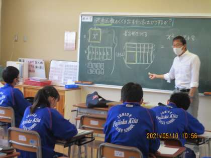3年生数学の授業 因数分解 長方形の面積をもとに考えました。