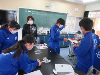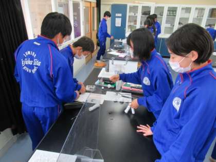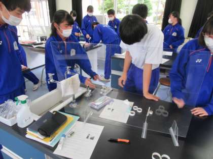 5月12日(水) 3年生の理科 公開日 2021/05/12 更新日 2021/05/12 できごと 3年生の理科では、記録タイマーを使って物体の動きをテープに記録し、打点の間隔と速さの関係性について調べる活動をしました。物体の運動を詳しく調べるためには、記録タイマーを正しく使わなければならず、班ごとに協力し合う姿が見られました。