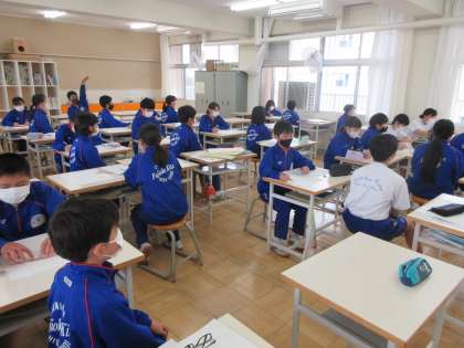 5月13日(木)5校時の授業 公開日 2021/05/13 更新日 2021/05/13 できごと 昼休みにバレーの練習をしている生徒たち。5校時の授業も頑張ります。 3年国語では、孔子の教えについて、訓読文を書き下し文に、書き下し文を訓読文にする学習をしていました。 1年理科では、棲んでいる場所をヒントに、生き物の仲間分けをしていました。 2年美術では、マスク姿の友達を集中して描いていました。