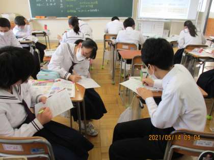 5月14日(金) 3年生社会科の授業 公開日 2021/05/14 更新日 2021/05/14 できごと 3年生社会科の授業。 世界恐慌に対して、欧米諸国はどのように対応したのだろう? 教室に行ったときには、ドイツの世論について近くの人と話し合っているところでした。