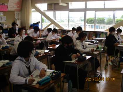 5月14日(金) 2年社会科の授業 公開日 2021/05/14 更新日 2021/05/14 できごと 2年社会科の授業「世界の資源とエネルギー」。 日本の取り組みについて学びました。 まさに本校生徒会が取り組んでいるSDGsの考え方が大切ですね。 2030年持続可能な社会を目指して、日本は今、どのように動いているのでしょう? みんなで関心を高めていきたいですね。