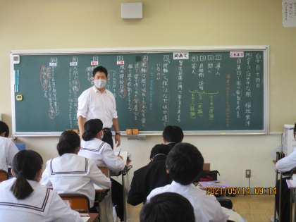 5月14日(金) 2年生国語の授業 公開日 2021/05/14 更新日 2021/05/14 できごと 2年生国語の授業。 「ダイコンは大きな根」(説明文)の学習です。 今日は、第5段落の要旨をまとめました。