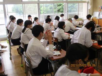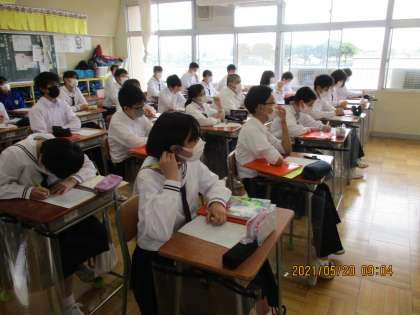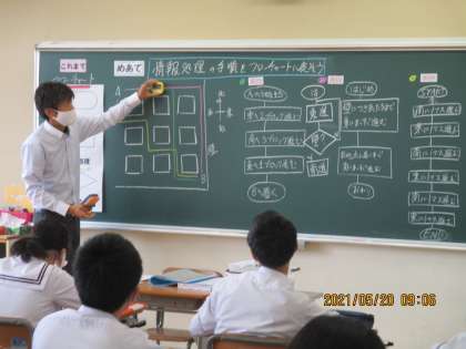 5月20日(木) 3年生技術の授業 公開日 2021/05/20 更新日 2021/05/20 できごと 3年生技術の授業の様子です。 プログラミングの基礎となるフローチャートについて学びました。 自分のやりたいことを、情報として捉え、その手順の各ステップを箱で表し、流れをそれらの箱の間の線で表していました。
