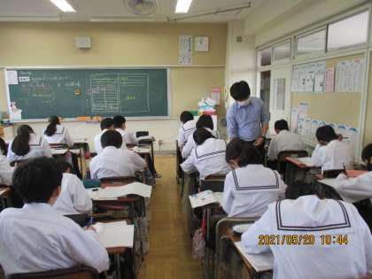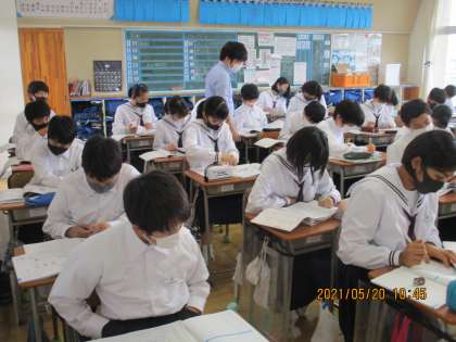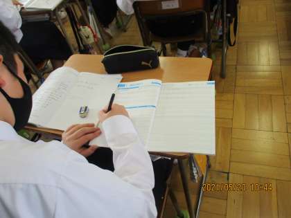 1年生英語の授業の様子です。 今日は英語ノートの使い方についてのオリエンテーションでした。