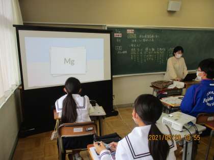 5月20日(木) 2年生理科の授業 公開日 2021/05/20 更新日 2021/05/20 できごと 2年生理科の授業の様子です。 元素記号は覚えられましたか? 今日はフラッシュ教材を使って、確かめました。 スクリーンを見つめる集中力がすごかったです。