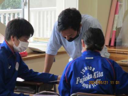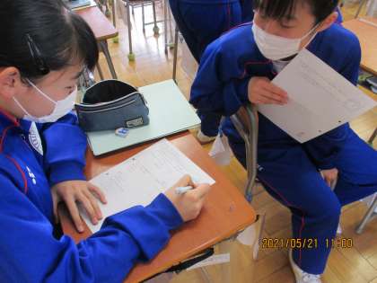 5月21日(金) 3年生数学の授業 公開日 2021/05/21 更新日 2021/05/21 できごと 3年生数学の授業の様子です。 「式を利用して図形の面積を求めよう」 先生のヒントを聞いた後、自分の考えをもとに近くの人と相談しながら考えていました。はたして、できたでしょうか?
