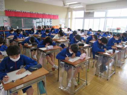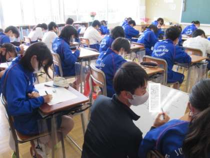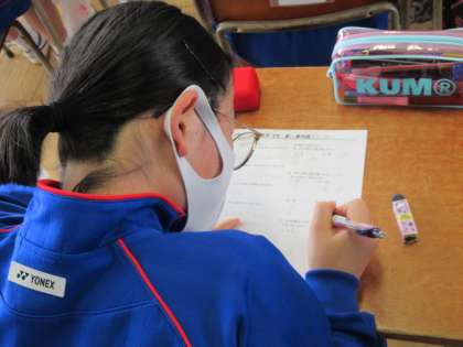 6時間目終了後の、1年生の学びタイムの様子です。今週は、数学の復習問題に取り組んでいます。どの教室もしーんと静まり返り、生徒の真剣味が伝わってきます。担任の先生たちは生徒たちの取組の様子を見守り、適宜、助言をしています。