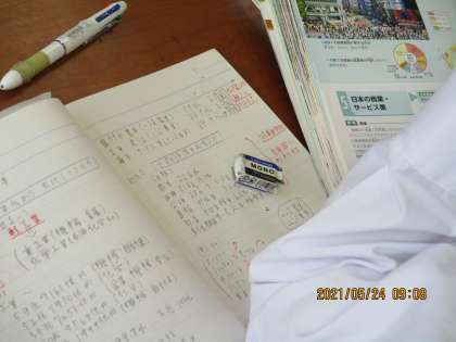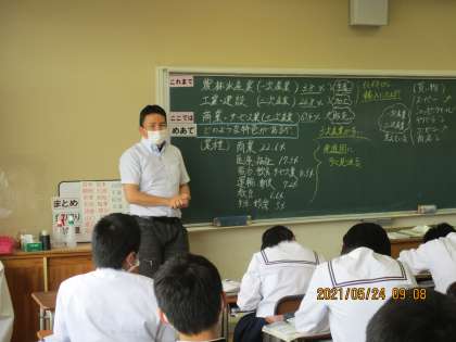 5月24日(月) 2年生社会科の授業 公開日 2021/05/24 更新日 2021/05/24 できごと 2年生社会科の授業の様子です。 今日は、これまでの1次産業、2次産業につづき、商業やサービス業について、その特色をまとめました。 1次産業、2次産業、3次産業について理解を深めました。 最後に先生から「6次産業」とは?と問いかけられていました。 いろんな回答が聞こえてきました。