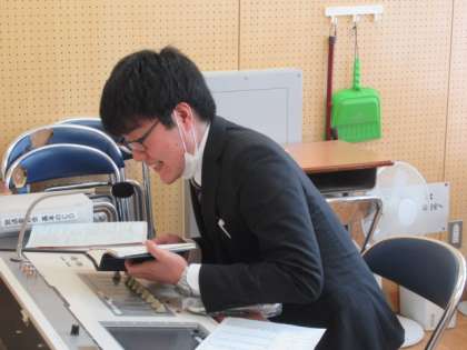 5月24日(月) 教育実習開始 公開日 2021/05/24 更新日 2021/05/24 できごと 本日より、2名の実習生が教育実習をスタートさせました。2名とも本校の卒業生です。それぞれ2年2組、2年5組に配属となり、2年生を中心に教科指導や生徒指導、学級経営等について実践を通して勉強していきます。初日の今日は、緊張しつつもキラキラとした笑顔を見せてくれました。3週間、身体に気を付けて頑張ってほしいと思います(写真中・下は、お昼の放送で全校生徒にあいさつをしているところです)。