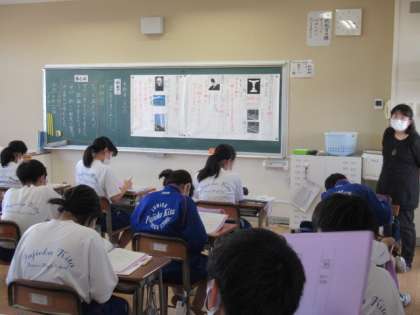 1年生の国語の授業では、教材『ちょっと立ち止まって』の学習を進めています。“ルビンのつぼ”などの絵を例にした文章から本論をまとめてきた生徒たち。今日は、要旨をまとめる学習に取り組みました。説明文の読み取りを通して、説得力ある文章の構成を身に付けているようです。