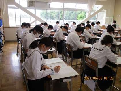 6月2日(水) 3年生実力テスト2日目 公開日 2021/06/02 更新日 2021/06/02 できごと 3年生実力テスト2日目です。 朝から真剣勝負です。 鞄を廊下に出して、テストモードにチェンジ。気持ちを引き締めて取り組む姿がありました。夢の実現にむけて、今から着実に努力をしてほしいと思います。