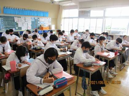 6月2日(水) 1年生英語の授業 公開日 2021/06/02 更新日 2021/06/02 できごと 1年生英語の授業の様子です。 notを使った文でコミュニケーションをとる練習をしました。 否定文の学習です。 最後には、まとめの問題にチャレンジしました。