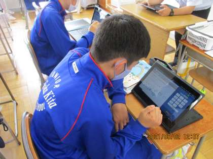 教室にうかがった時には、授業のまとめが終わり、各自のペースに併せて、PCドリルパークを使って、復習問題にチャレンジしているところでした。