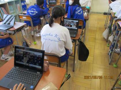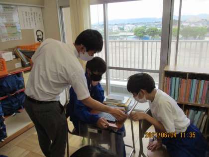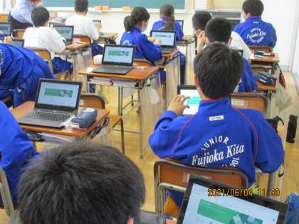 6月4日(金) クロームブック 公開日 2021/06/04 更新日 2021/06/04 できごと 6月7日(月)に、PC端末を使用し、Google Meetによる学校と各家庭間の接続テストを行います。そこで、今日の4校時には1年生の各教室では、取扱について説明がありました。
