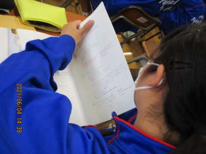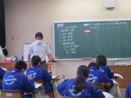 6月4日(金) 2年生理科の授業 公開日 2021/06/04 更新日 2021/06/04 できごと 2年生理科の授業の様子です。 ものが燃えるとは、どのような化学変化なのだろうか? 今日は今まで習ったことをもとに、各自ノートにまとめました。 これまでの授業のノートを何度も見返しながらまとめていました。