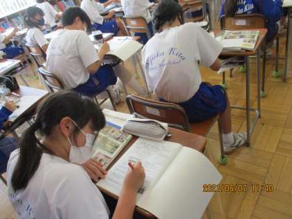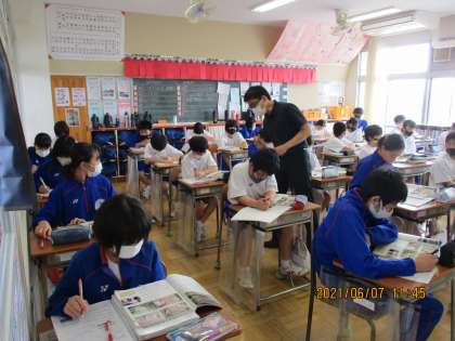 6月7日(月) 1年生社会科の授業 公開日 2021/06/07 更新日 2021/06/07 できごと 1年生社会科の授業の様子です。 アラビア半島、乾燥した地域の暮らしについて学びました。 前回の熱帯雨林気候に続いて、今日は、砂漠気候の特徴についてまとめました。
